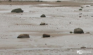 Такая картина наблюдается на берегу реки Волга. Вода ушла от берега на расстояние 20-30 метров.