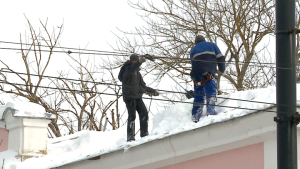 Заледеневшие кровли домов и огромные шапки снега на крышах на аппаратном совещании потребовали убрать как можно скорее.